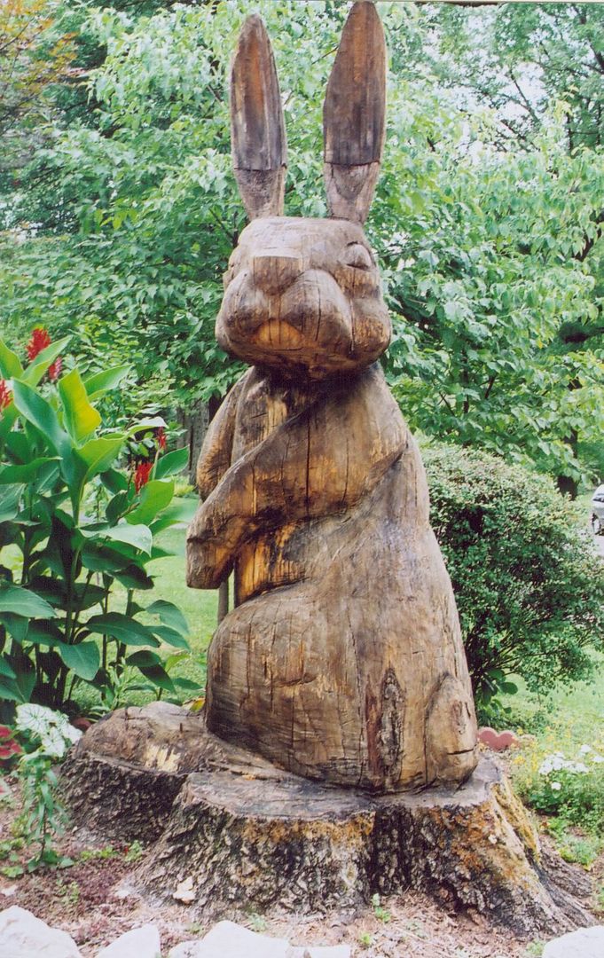The bunny you see in the picture links above was carved from a tree, and I think it's a cooler way to use dead wood than burning it.